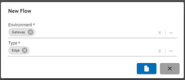 Once you have a gateway and one or more devices connected, the process of designing and deploying an Edge flow starts at the Data Flow Designer. When creating a new flow, select the Gateway environment and the Edge flow type - this tells Fuuz that the flow is designed to deploy onto the Device Gateway.