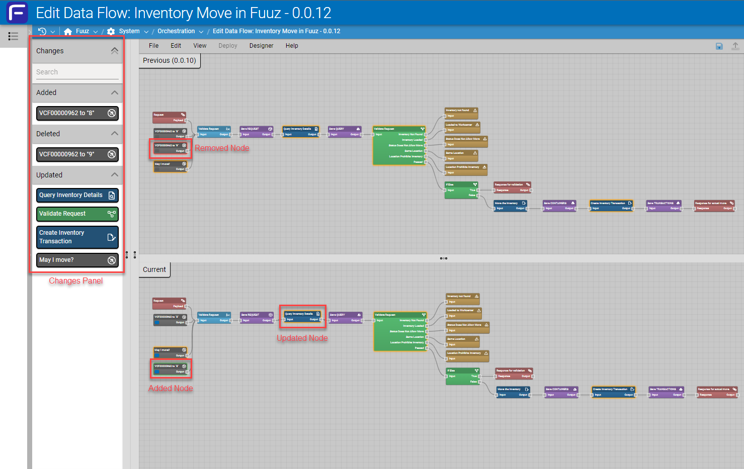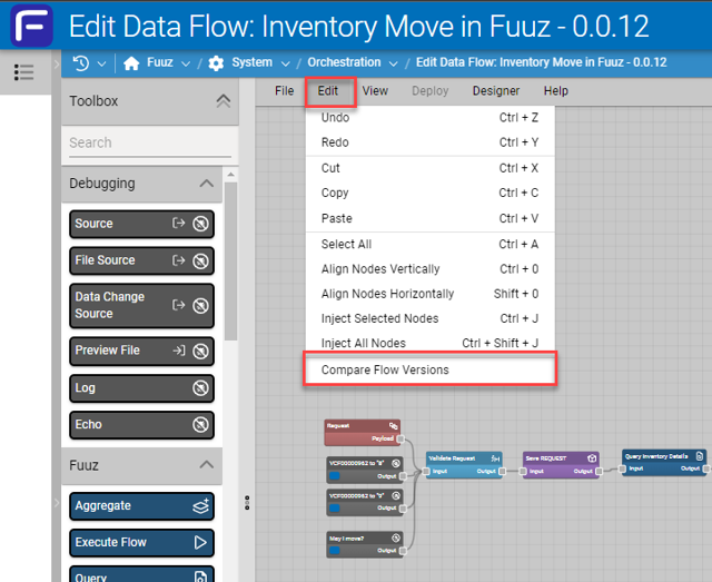 Added “Compare Versions” mode to Edit menu in the Flow Designer
