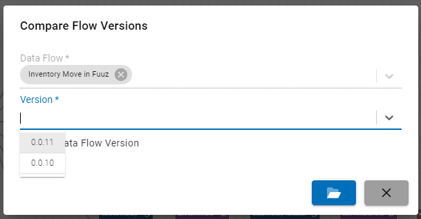 When you have a data flow open, you’ll now find a new Compare Flow Versions option in the Edit menu. When selected, you’ll be prompted to select from any of the past versions of the data flow to compare against.