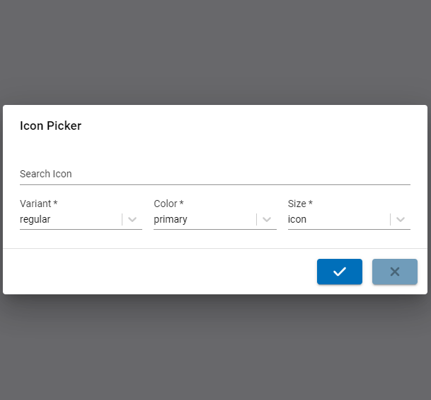 The 2023.12 release also includes a small but significant quality of life feature for users of the screen designer: an integrated icon picker! This new input type is activated by clicking the displayed icon in an icon field (for example, on a button or icon element). The dialog that pops up allows you to search for icons by name or keyword, as well as to select and quickly preview colors, variants, and sizes.