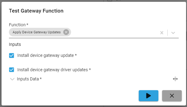 Once an administrator has identified an update is available, they would previously have needed to sign in to the machine on which the gateway was installed in order to initiate an update. With version 2023.7.0 of the Fuuz Platform and Device Gateway, updates can now be initiated remotely from the Device Gateways form via the “test function” button. Administrators can select whether they want to install a gateway update, driver updates, or both.