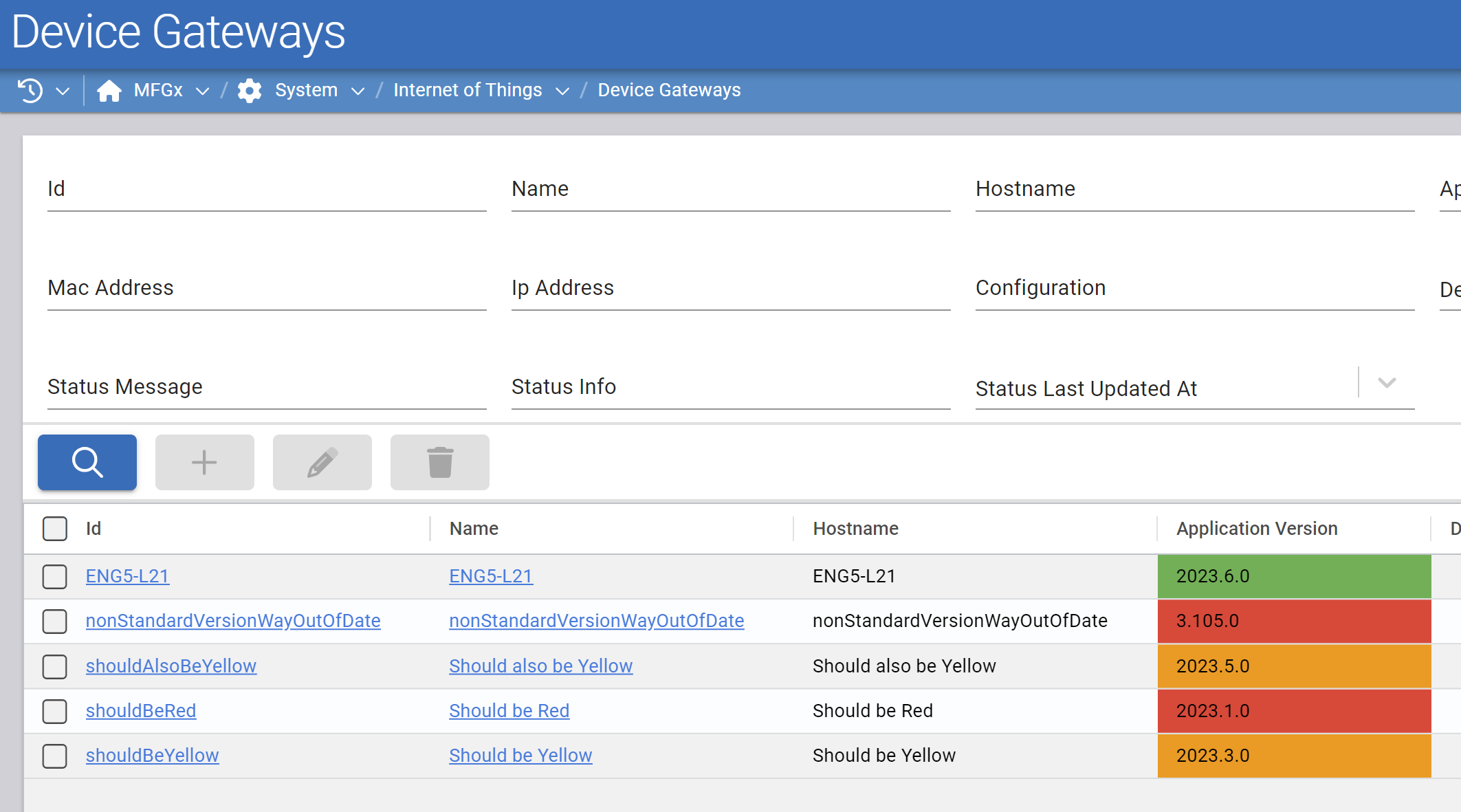 Added color-coding to the Application Version column on the Device Gateways screen to identify installations in need of updates