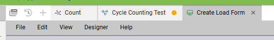 The new tab bar across the top of the designer displays the list of open application designer tabs using the same indicators, along with quick actions to create a new component and view recently closed or updated tabs.