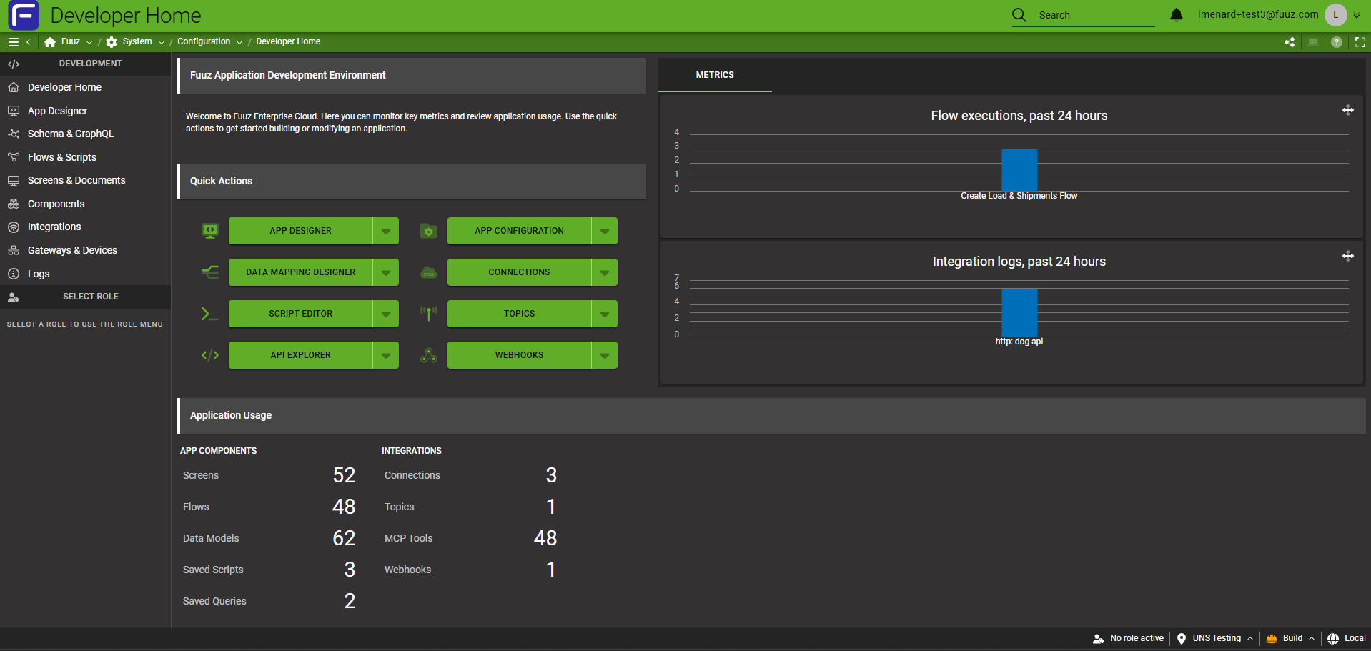 In last month's release notes, I talked about improving our drawer menu interaction in preparation for improved navigation - and the first step of that is rolling out this month with a new system for access type menus! These menus (example screenshot below) are system-defined and driven by a user's access type - administrator, developer, etc. - to give them a list of the common actions that access type needs. In a way, you can think of these as "system role" menus - but they live alongside the existing role system, which is aimed at allowing administrators to define custom permissions and navigation for their users. End users won't generally see these menus - they'll be using roles - but for administrators or developers, these role menus provide structured, discoverable navigation that we can add to as new platform features roll out.