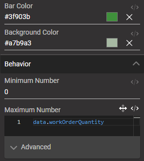 The 2025.4 release also includes new configuration options for the Progress Bar screen element. The existing minimum and maximum fields now support dynamic values, allowing screen builders to wire them up to data coming back from the API - for example, the work order quantity.
