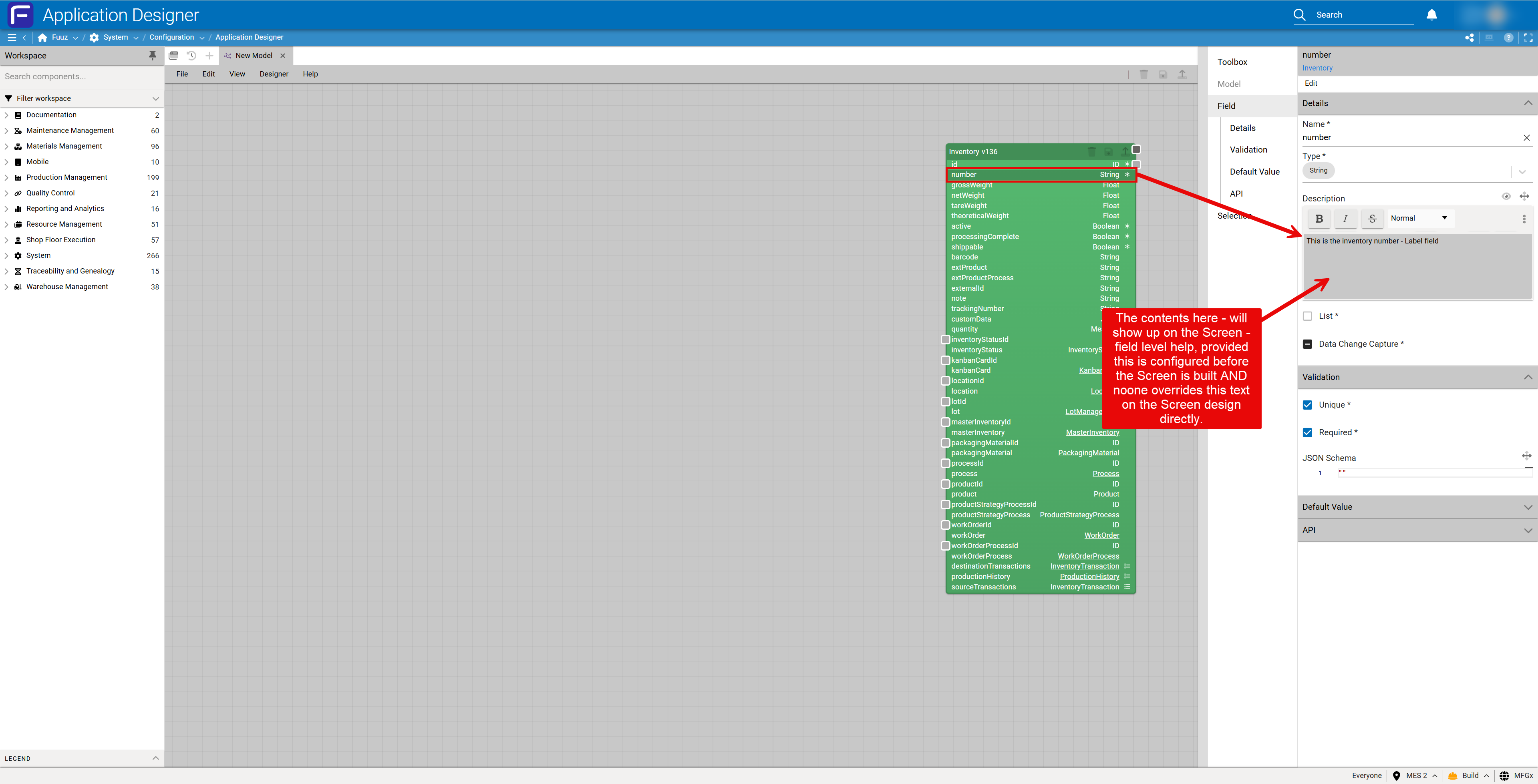 Administrators: In Fuuz, you control what displays in help for your application screens (with appropriate permissions)—edit the screen definition, update the field description, then save and deploy.