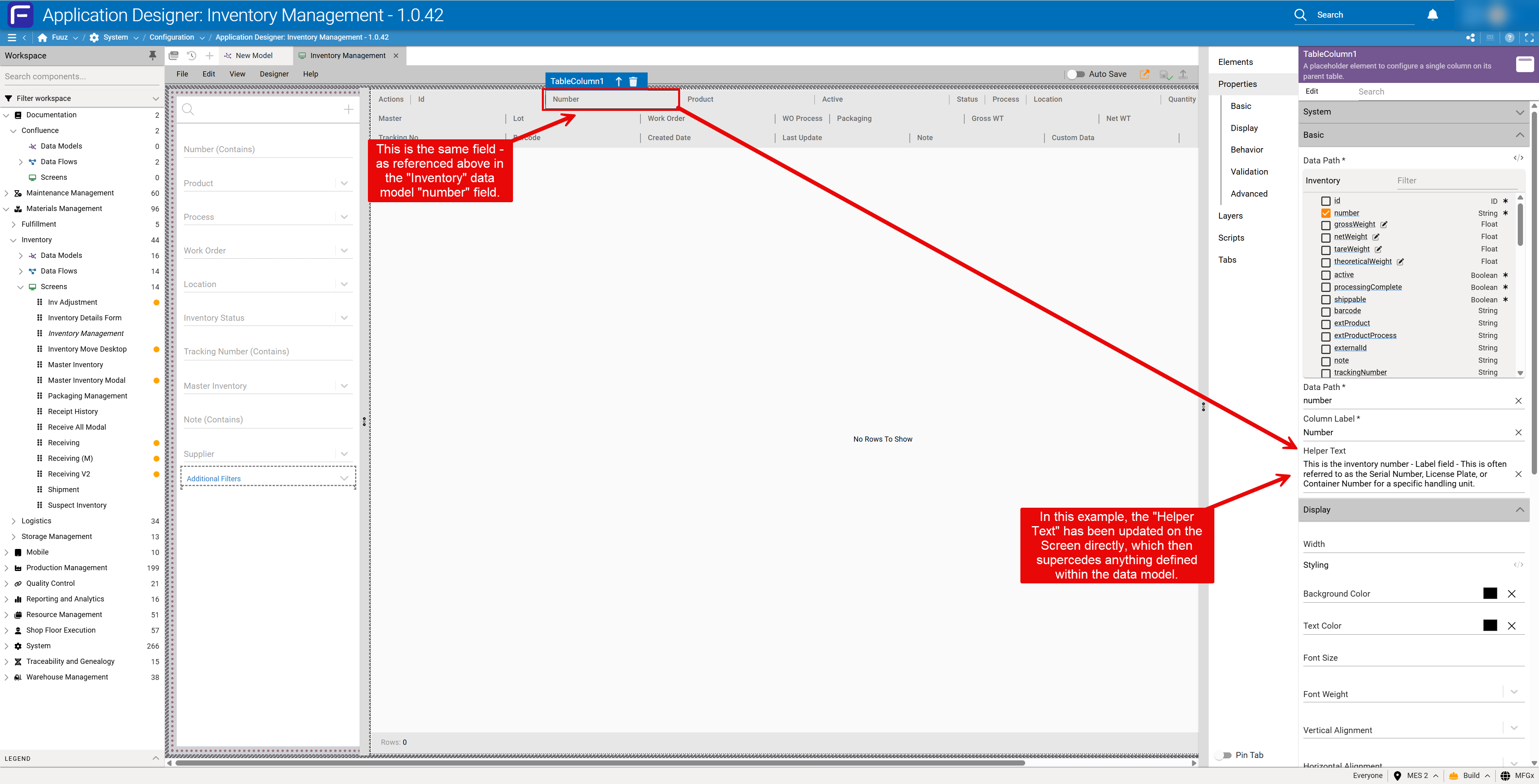 Screen-Level Overrides: Designers can select a field in the screen definition and set a custom description that supersedes the model description.