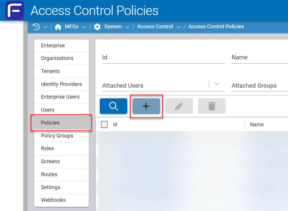 Click on the pale blue + button to create a new policy.