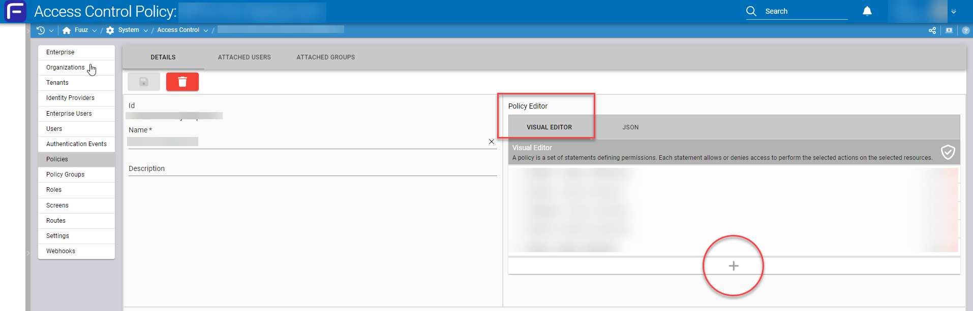 The visual policy editor makes it is easy to create and modify access control policies without requiring written policies in JSON.