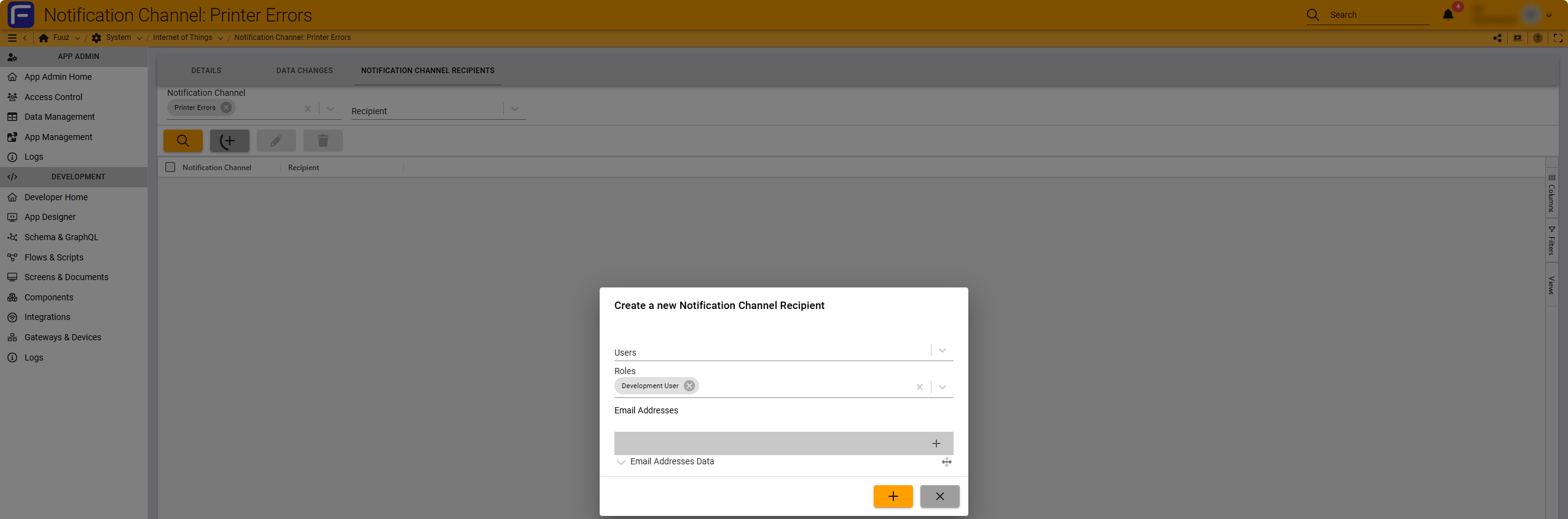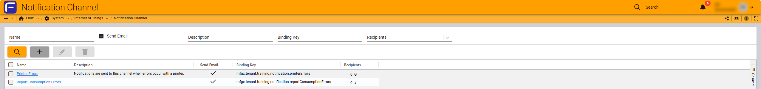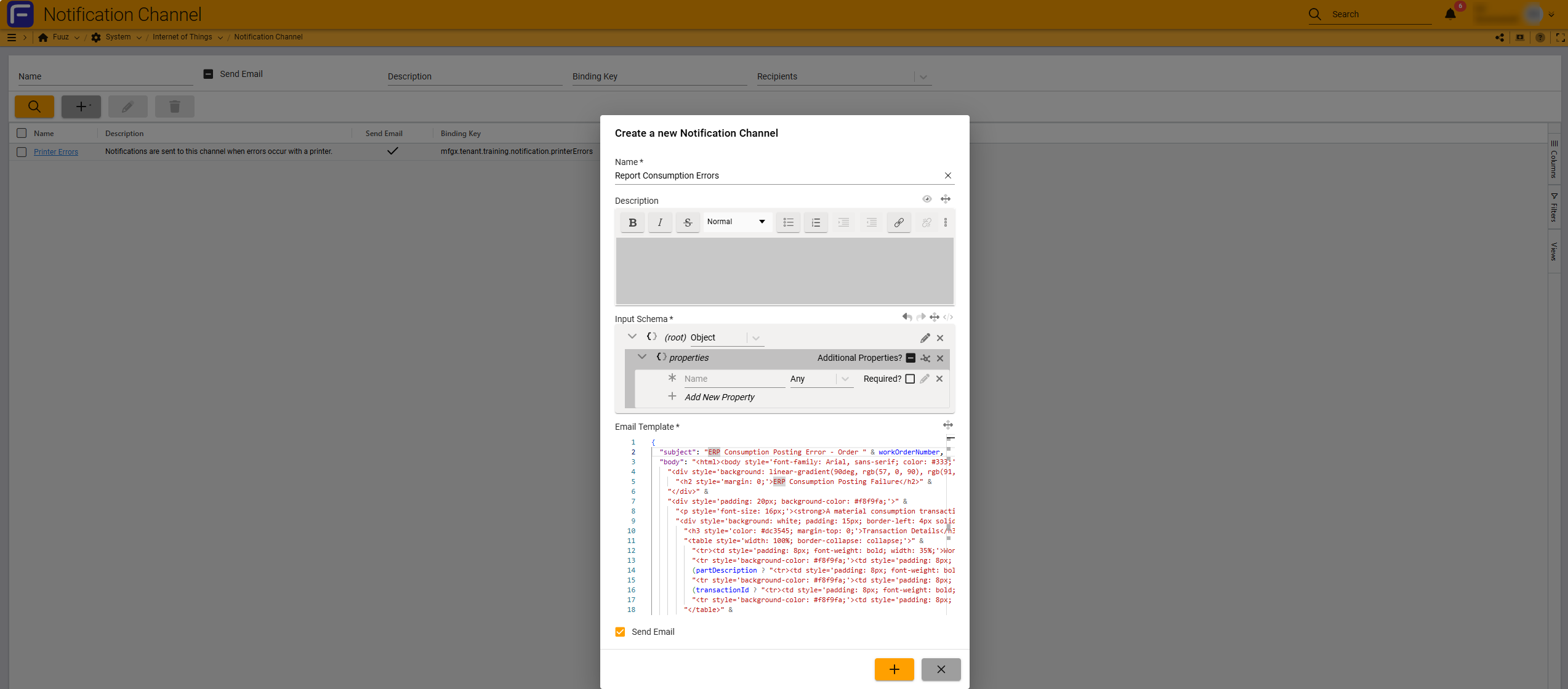 Fuuz → System → Internet of Things → Notification Channel