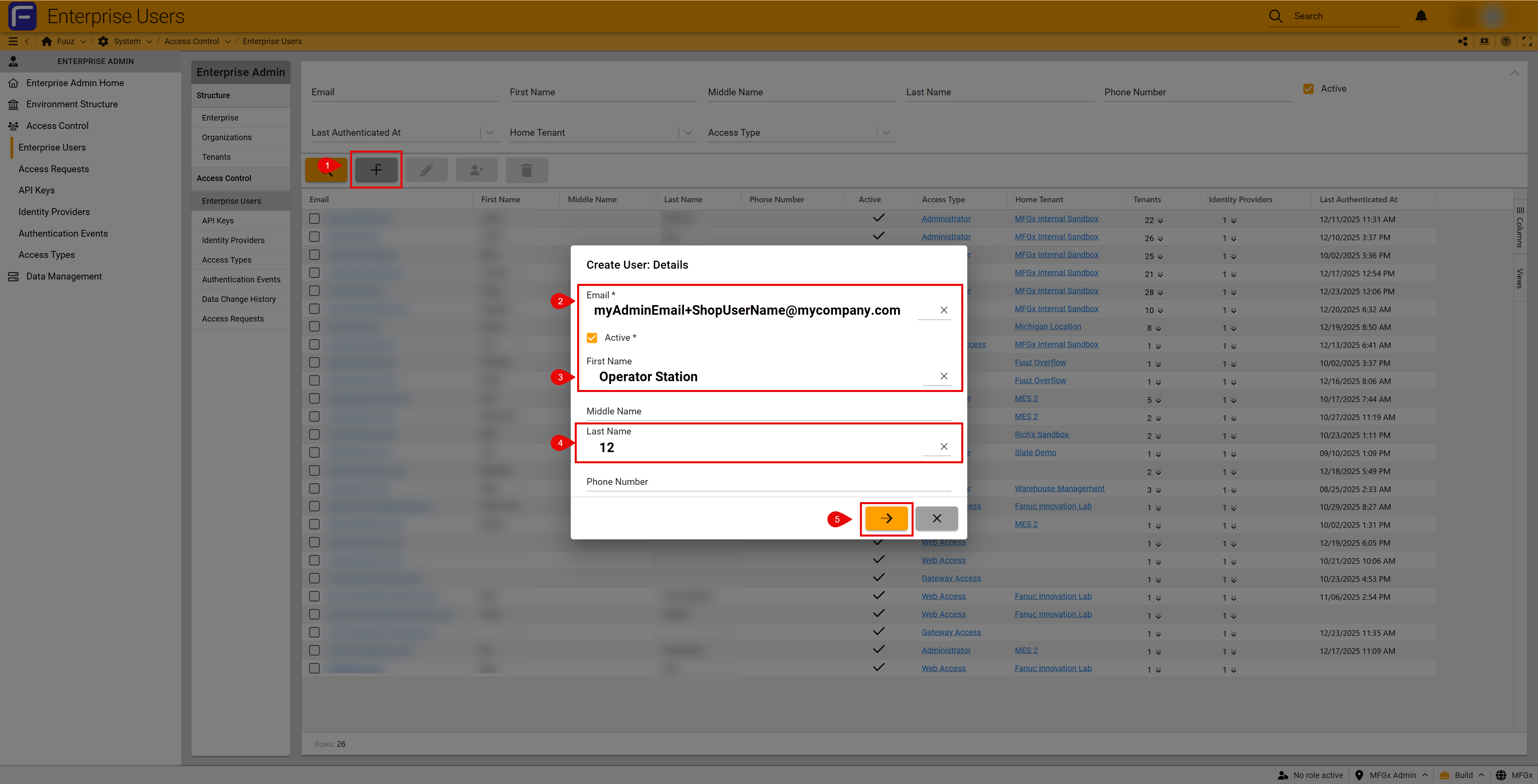 Log in to Enterprise Administration and navigate to Access Control → Enterprise Users.